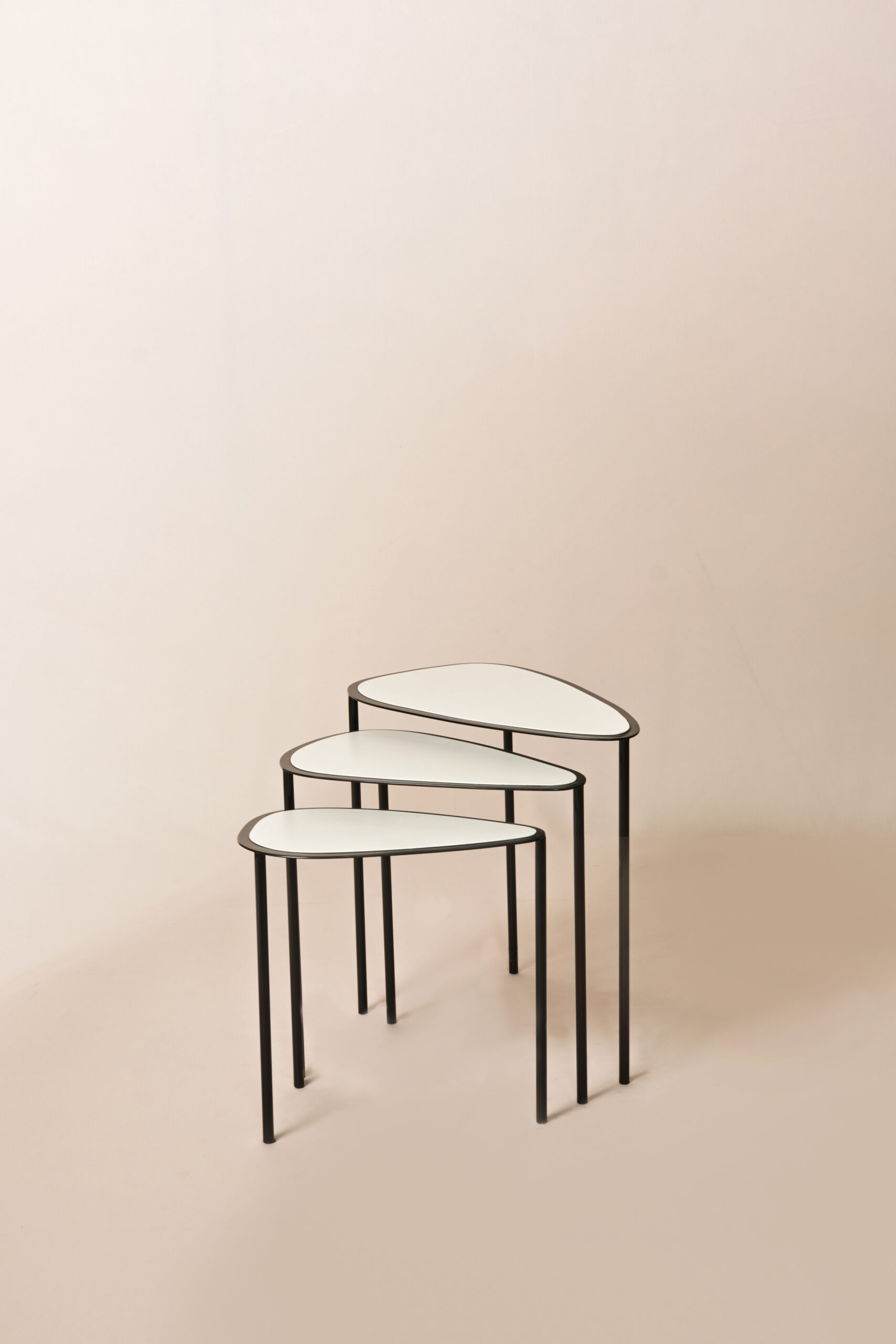 Intégralement fabriqué dans notre atelier Normand, notre emblématique trio de GIGOGNE HERA est la pièce forte de notre collection. Doté d’un style singulier, ce trio de tables gigognes offre une praticité importante, facilement modulable au grè de vos envies et de vos besoins il sera parfaitement trouver sa place dans votre intérieur. Pensé comme les marches des sols grecs, aux courbes organiques et singulières. Consultez notre instagram pour voir nos produits Atelier Héphaïstos en situation.